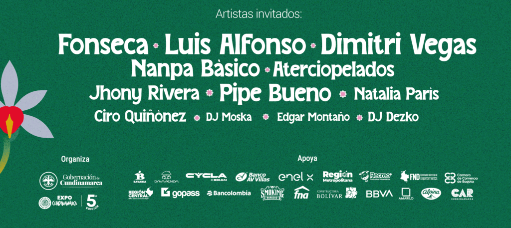 Prepárate para encontrar más de 2.000 artistas en escena que traerán lo mejor de las ferias y fiestas de Cundinamarca. Además habrá banda sinfónica, comparsas, danzas y será la oportunidad para apreciar lo mejor de la artesanía cundinamarquesa elaborada en vivo por nuestros artesanos en lana, cuero, bisutería, cestería, cerámica y alfarería. Cuatro días de ritmo, color, orgullo y celebración cundinamarquesa.